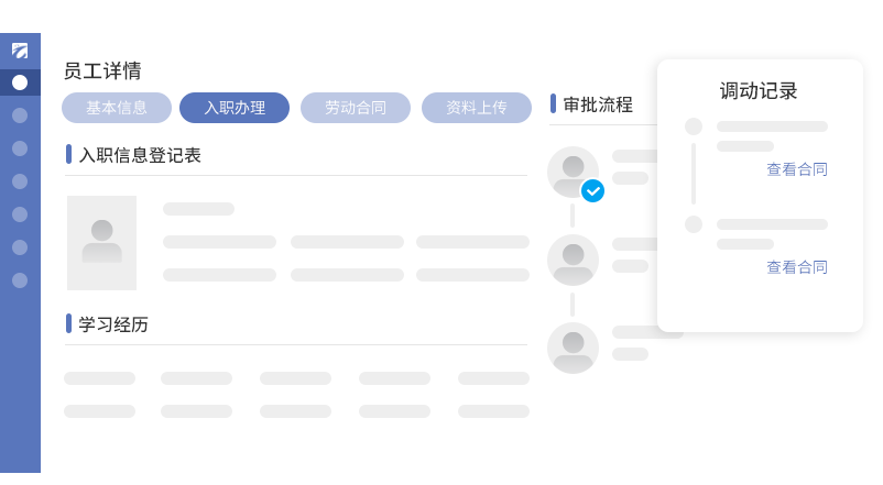 支持组织架构调整和人员全生命周期在线管理,员工生命周期自动记录