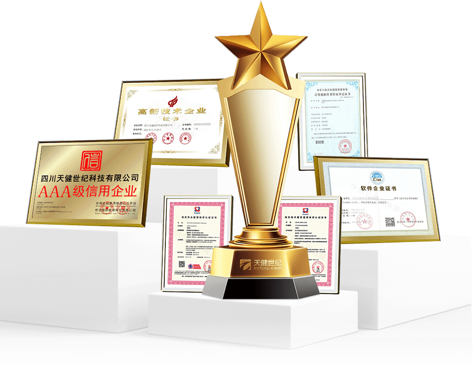 公司已获高新技术企业认定、三体系认证(ISO9001/ISO14001/ISO45001)、信息技术服务管理体系认证ISO20000、信息安全管理体系认证ISO27001、双软认证企业(“软件产品认证”+“软件企业认证”)、增值电信业务经营许可证(ICP+EDI)、AAA级信用企业、成都中小企业协会会员单位等证书,累计申请计算机软件著作权登记证书数十项。